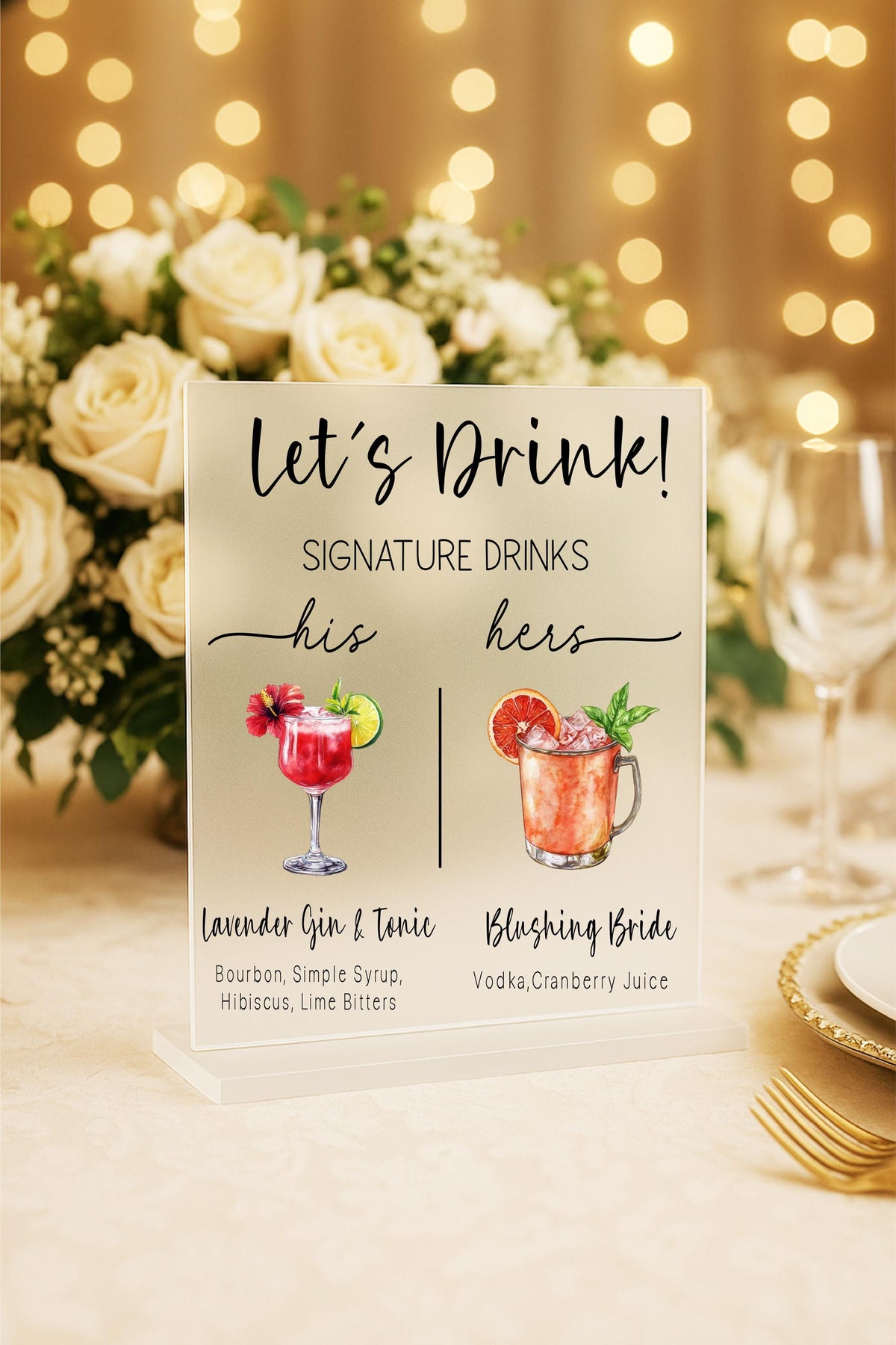 Wedding Signature Drink Sign – His and Hers Cocktail Menu Bar Sign, Personalized Signature Cocktails, Reception Bar Décor