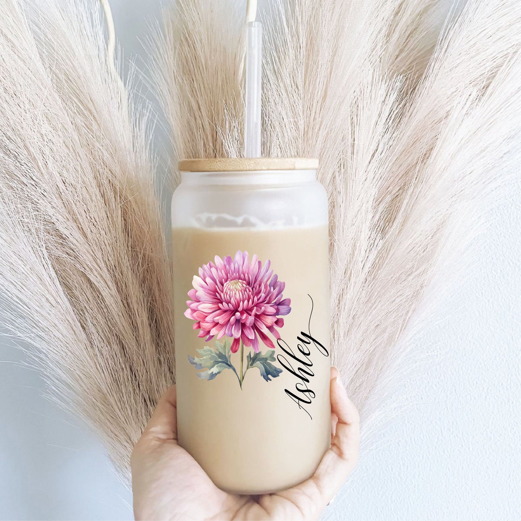Introducing our Personalized iced coffee cup with name Lid & straw Bridesmaid proposal gift Glass tumbler cups Birth Flower Tumbler Bachelorette party favor! This stunning 16oz glass cup is the ultimate combination of style and functionality, making it the perfect gift for any special occasion, be it a bachelorette party, bridal shower, or a heartfelt bridesmaid proposal. Crafted from high-quality, durable glass, this cup features a beautiful wildflower design that adds a touch of elegance to your favorite beverages.