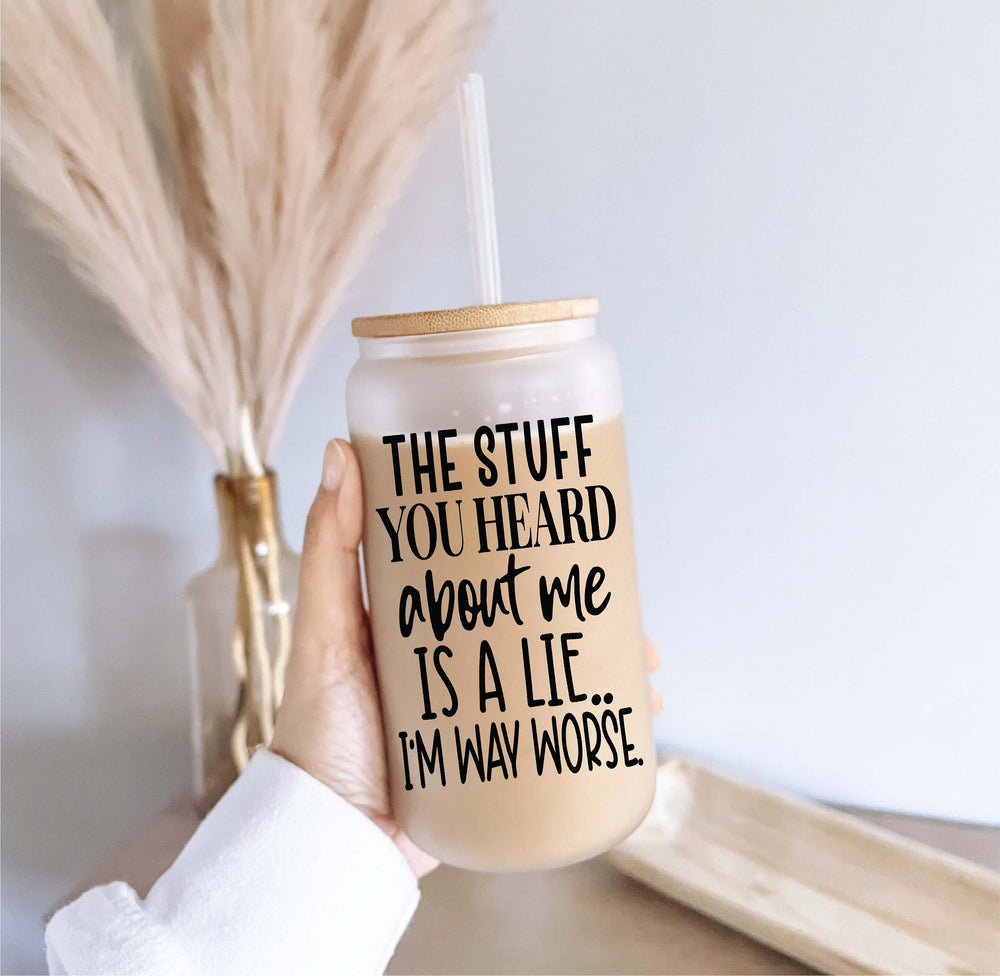 Elevate your iced coffee experience today with the Funny sarcastic mom Iced coffee glass with lid and straw Sarcastic Iced coffee cups Iced coffee glass cup frosted Soda can coffee glass and enjoy every sip with a smile!
