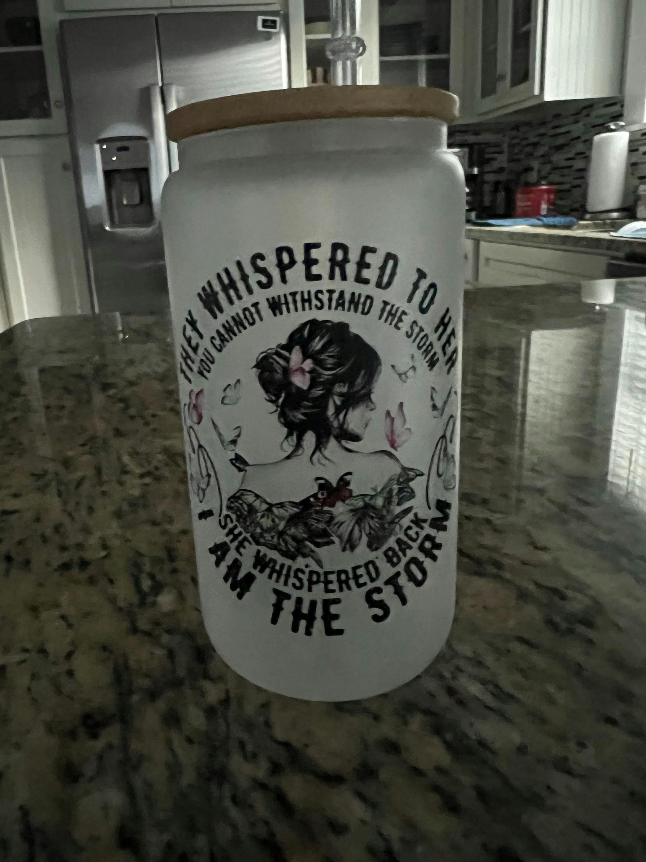 Discover the perfect addition to your beverage collection with our Iced coffee cups They whispered to her Iced coffee glass can with bamboo lid, I am the Strom Frosted/Clear glass can cup with lid and straw. This 16oz glass tumbler is not just functional; it’s a statement piece that elevates your drinking experience. Whether you’re sipping refreshing iced coffee, enjoying a chilled soda, or indulging in a favorite cocktail, this glass can handle it all with style.