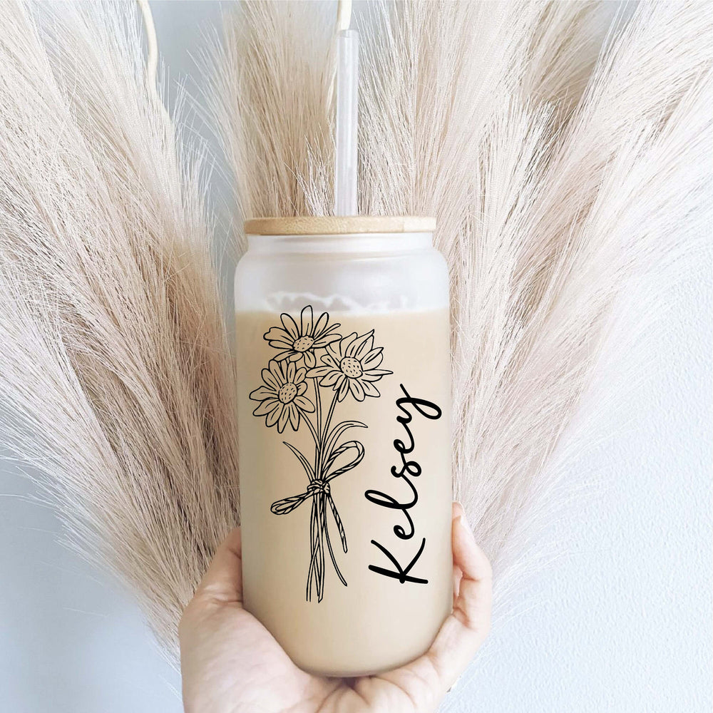 Whether you're hosting a memorable event or enjoying a quiet moment, the wild Daisy Flower Iced coffee cup with Name Glass tumbler is sure to impress. Order yours today and sip in style!