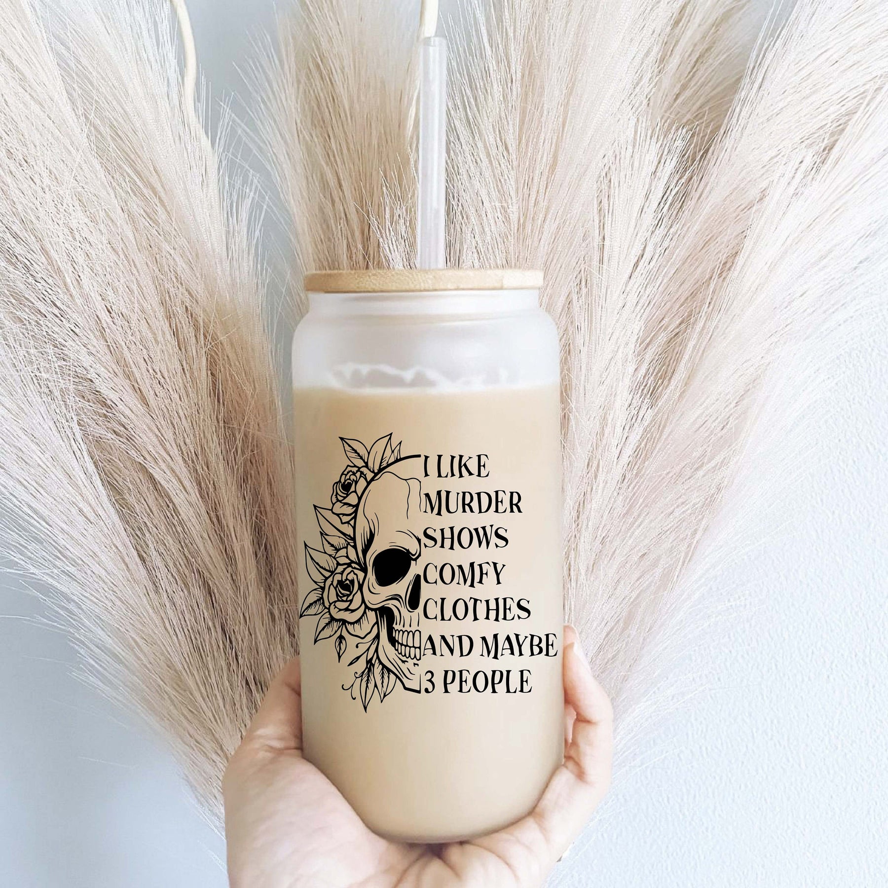 Discover the perfect blend of style and humor with the I like murder shows floral skull Iced coffee Glass cup with lid and straw. This uniquely designed iced coffee glass captures the essence of true crime enthusiasts and coffee lovers alike. Whether you’re sipping your favorite iced coffee or enjoying a refreshing beverage during a binge-watch of your favorite crime show, this sarcastic glass cup is your ideal companion.