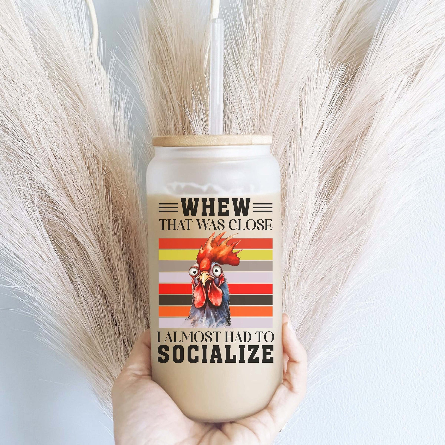 Introducing the perfect companion for iced coffee lovers—the Introvert funny Iced coffee glass with lid and straw Iced coffee cups Iced coffee glass cup Rooster Iced coffee glasses Socialize coffee cup. This charming 16oz glass cup is not just another drinkware option; it combines humor, style, and practicality, making it ideal for any occasion. Crafted from durable glass, it features a sleek, transparent design that beautifully showcases your favorite beverages, be it a delightful iced coffee, refreshing soda, or even a chilled beer.