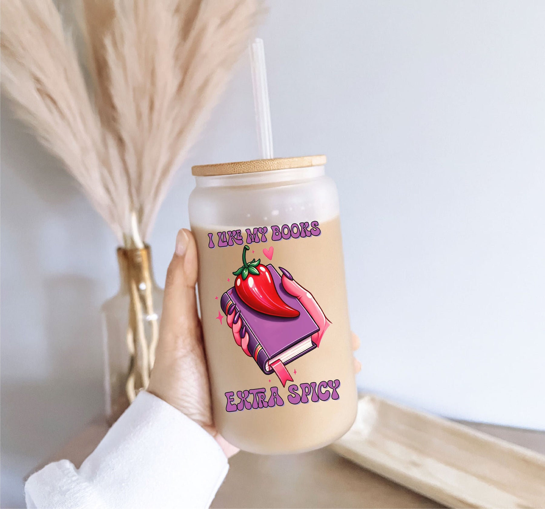 Elevate your beverage experience with the I like my books extra spicy Frosted ice coffee Glass with Bamboo Lid Cold Coffee Cup Spicy book Gift Extra spicy book club coffee cup. Perfect for personal use or as a thoughtful gift for friends and family. Order now and enjoy your drinks in style!