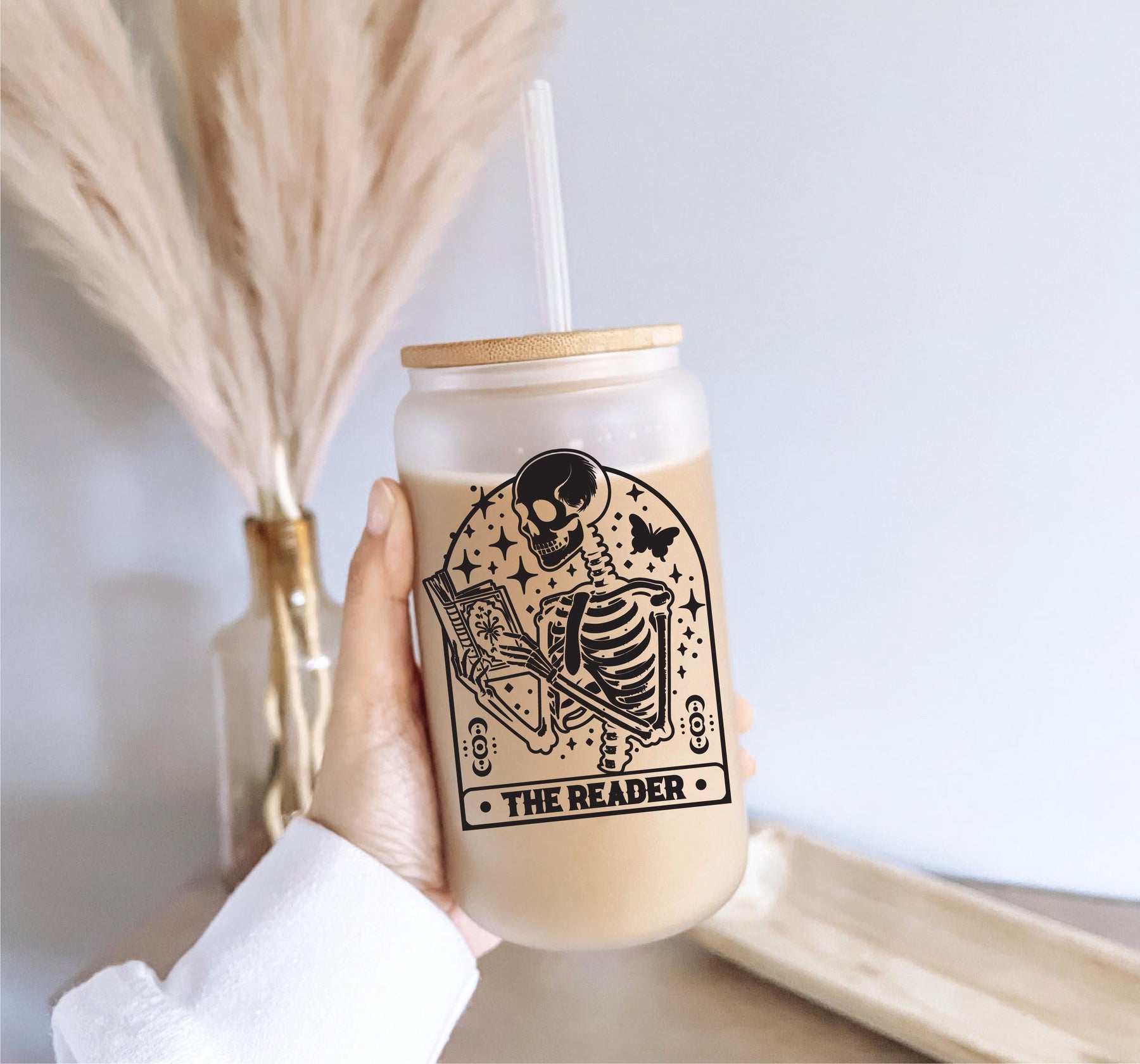This Skeleton Reader cup is an ideal gift for book nerds and coffee enthusiasts. Whether it's for a birthday, holiday, or just because, this tumbler celebrates your passion for books while keeping your beverages stylishly contained. With options for frosted or clear glass styles, you can choose the one that best suits your taste.