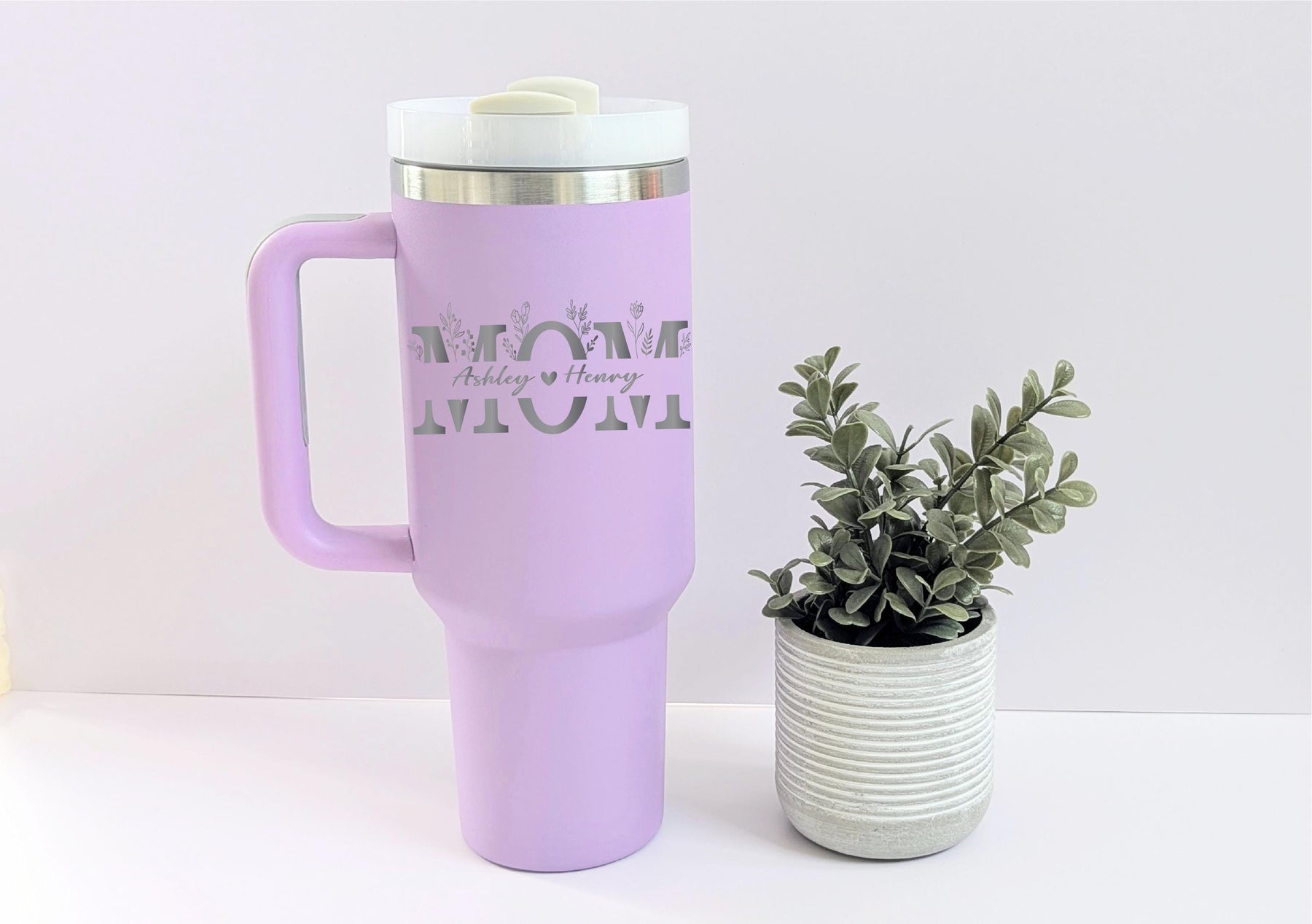 Mama Tumbler With Kids Name Floral Travel Cup Gift Idea