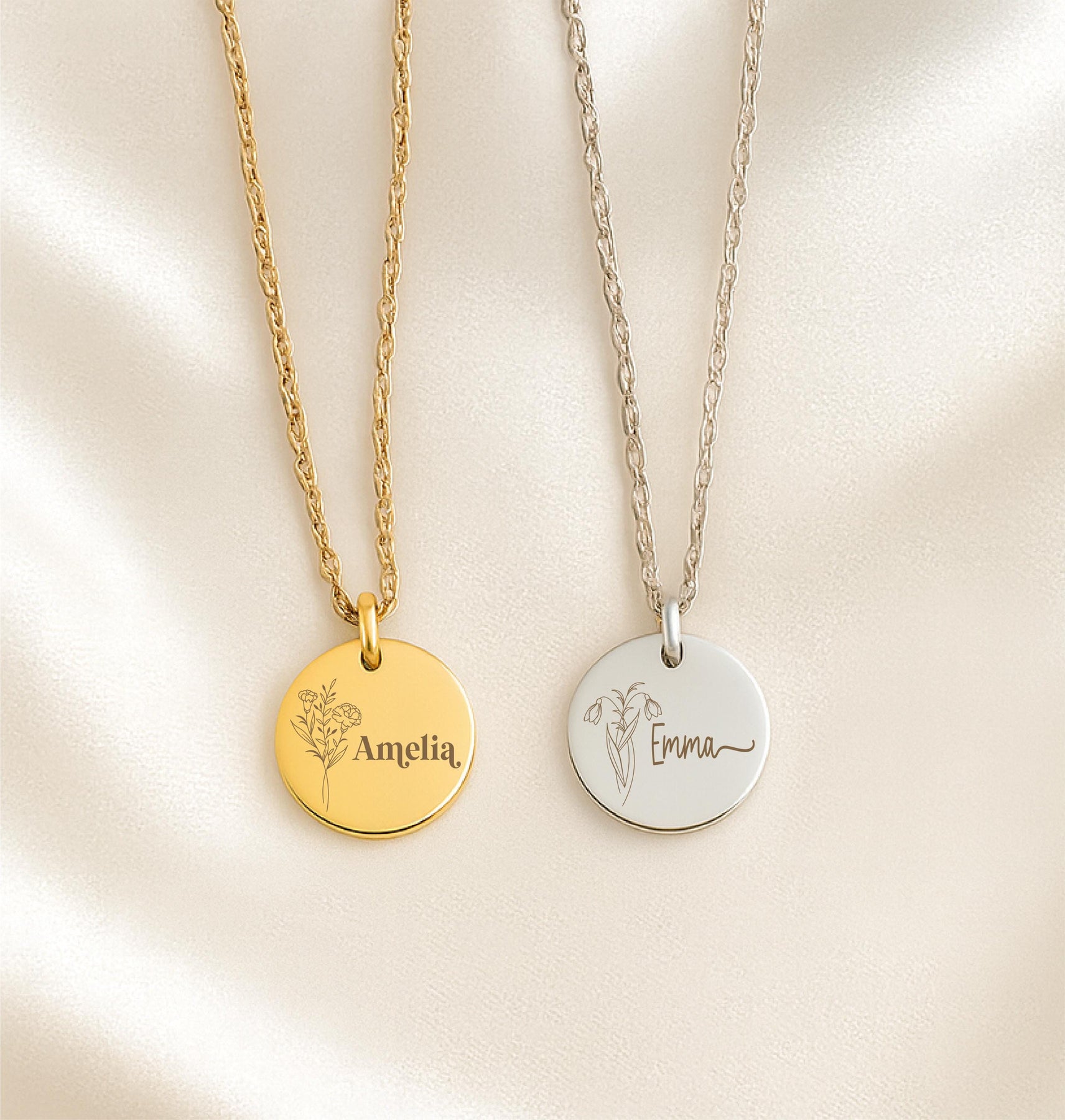 Celebrate her uniqueness with this elegant personalized birth flower necklace. Featuring a custom engraved name and delicate flower design, each pendant is crafted in your choice of gold, silver, or rose gold finish. It’s the perfect meaningful gift for birthdays, Christmas, anniversaries, or just because.